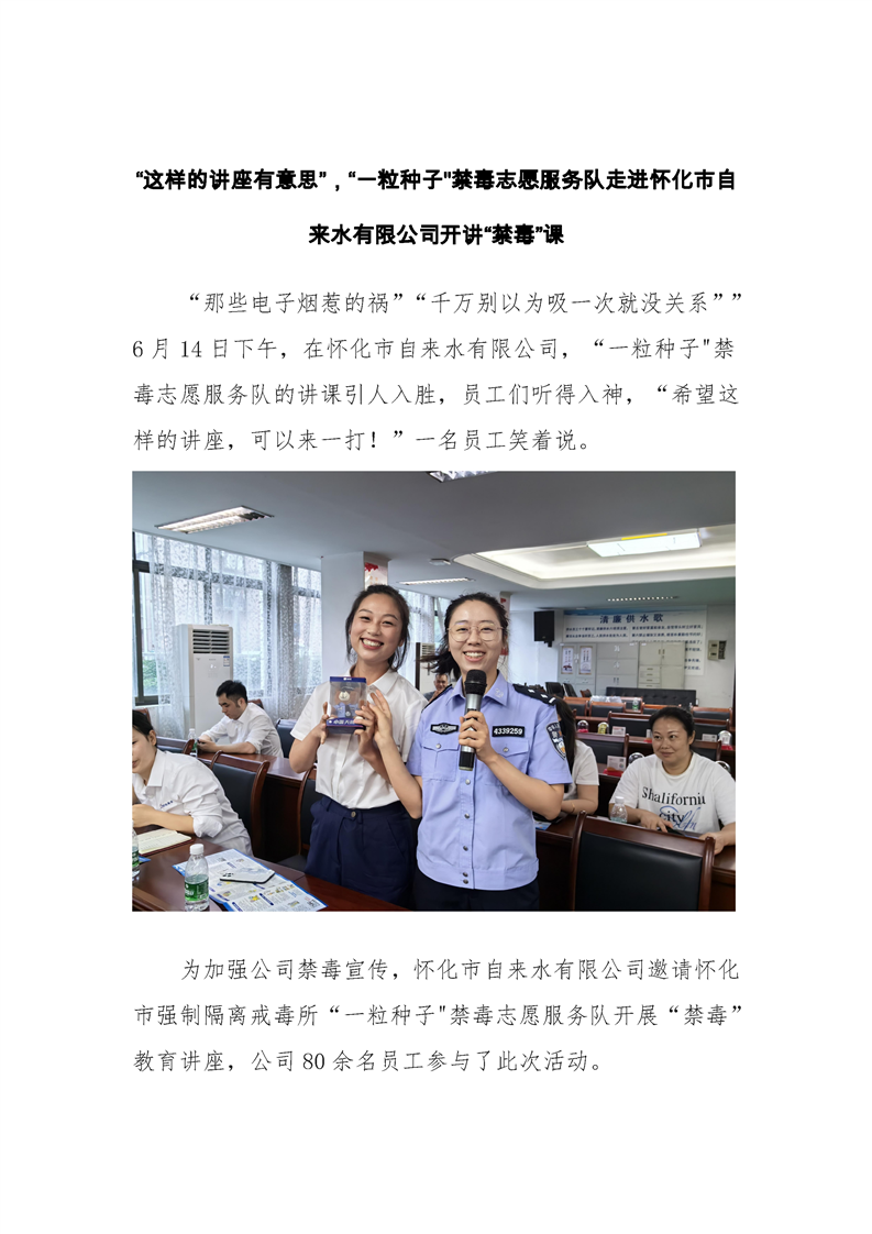 “這樣的講座有意思”,“一粒種子"禁毒志愿服務(wù)隊走進(jìn)懷化市自來(lái)水有限公司開(kāi)講“禁毒”課