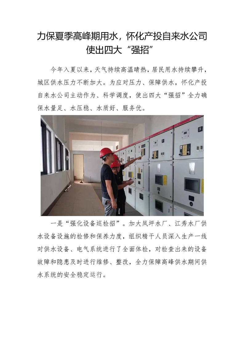 懷化產(chǎn)投自來(lái)水有限公司四個(gè)“強化招”保夏季高峰用水