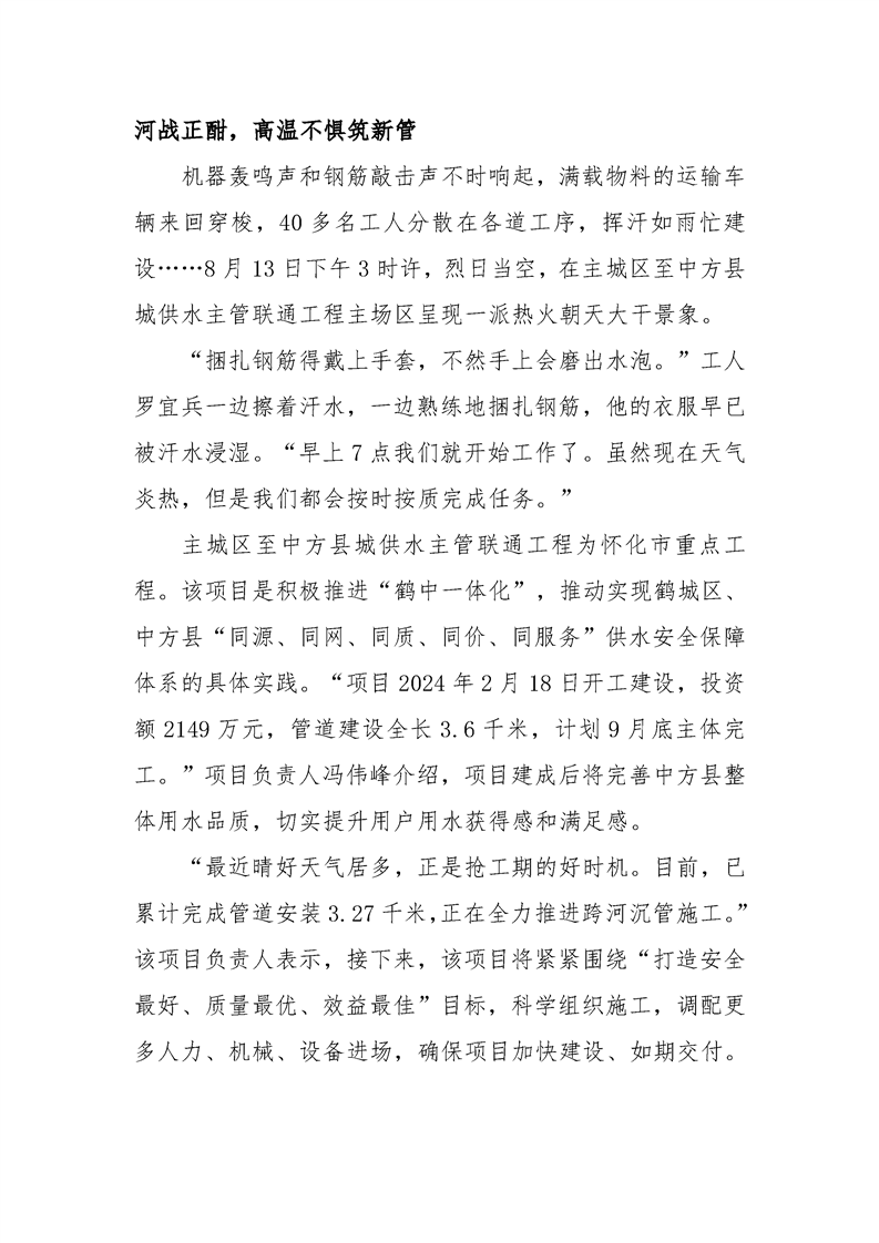迎戰酷暑 “水力”全開(kāi) 懷化產(chǎn)投自來(lái)水公司重點(diǎn)項目建設不松勁