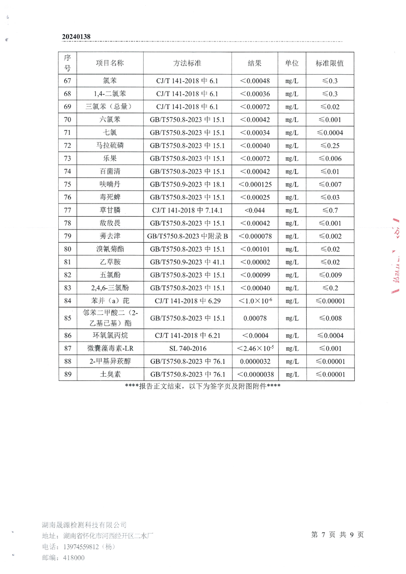 帶子街水廠(chǎng)水廠(chǎng)2024年半年檢測報告